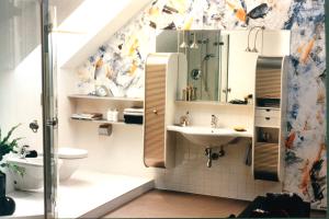 Auf die richtigen Ideen kommt's an: Ein Badezimmer für die ganze Familie Stellen Sie sich vor, die Oberkante Ihres Waschbeckens befände sich in einer Höhe von 1,70 Metern. Keine Frage: Wenn, wie in einem solchen Fall, das Kinn gerade noch in das Waschbecken hineinreicht, würde die tägliche Reinigung wenig Spaß machen. Vor genau dieser Situation aber stehen unsere Kinder tagtäglich - kein Wunder, wenn sie da auf "Katzenwäsche" setzen. Dabei lässt sich leicht Abhilfe schaffen: Ein - bitte aber wirklich - rutschfestes Stockerl genügt und schon kann Junior das Waschbecken normal benützen und sich auch voll im Spiegel sehen. Vom Baby zum Teenager Kinder wachsen schnell - oft schneller als man denkt. Eine Anschlussmöglichkeit für einen zweiten Waschtisch oder gleich der Einbau eines Doppelwaschtisches bzw. eines zweiten Waschtisches helfen mögliche spätere Kapazitätsengpässe bzw. den damit vorhersehbaren Familienkrach gleich von Anfang an auszuschließen. Am Platz muss das nur selten scheitern: Doppelwaschtische sind bereits ab einer Breite von 95 Zentimetern erhältlich. Durch geschickte Gesamtplanung - etwa durch eine andere Anordnung der Wanne - lässt sich solch ein Waschtisch selbst in einem relativ kleinen Raum unterbringen. Denn die Zeit kommt sicher, wo der Junior des Hauses Punkt 7 Uhr in die Schule aufbrechen muss, die heranwachsende Tochter noch etwas Schminke auflegen möchte und Sie dringend zur Arbeit müssen! Eine weitere Möglichkeit zur Erhöhung der Kapazität des Badezimmers ist die Installation von Badewanne und Duschkabine. Auch dafür ist bei Ideenreichtum des Planers nicht unbedingt ein riesengroßes Badezimmer erforderlich. So kann beispielsweise mit einer etwas kleineren Wanne Platz für die Dusche geschaffen werden. Äußerst praktisch ist natürlich ein extra WC oder gleich ein zweites, kleineres Badezimmer (das man übrigens auch praktisch als Gästebad benutzen kann). Autsch - heiß!!! Kinderhaut ist temperaturempfindlicher als jene von Erwachsenen. Um Verbrühungen auszuschließen, wird der Installateur im kindergerechten Bad Thermostatarmaturen bei Waschtisch, Badewanne und Dusche vorsehen. Sie halten durch automatische Mischung von Warm- und Kaltwasser konstant eine einmal gewählte Temperatur. Die Idealtemperatur liegt übrigens bei 38 °C. Mit einem zusätzlichen, von Kinderhand kaum verstellbaren Knopf kann man diese Höchsttemperatur einstellen - was den Kindern schmerzhafte Erfahrungen mit zu heißem Wasser erspart - und den Eltern unter Umständen die Fahrt ins Spital. Ordnung und Kinder - geht das? Ein wichtiger Aspekt beim Bad für die Familie ist auch Ordnung halten. In einem herkömmlichen Spiegelschrank werden sich die Toilette-Utensilien für drei, vier oder mehr Personen kaum unterbringen lassen. Mehr Platz bietet hier ein in unmittelbarer Nähe des Waschbeckens aufgestellter spezieller Badezimmerschrank. Dort hat jedes Familienmitglied sein eigenes Fach, zusätzlich ist auch noch Platz für die Reservetuben an Zahnpaste und Rasiercreme - was mitunter ebenfalls morgendliche Aufregung vermeiden hilft. Badezimmermöbel mit entsprechender Ausstattung sind auch ideal, um die bei einer Familie ja ebenfalls in größeren Mengen anfallende Schmutzwäsche aufzunehmen. Einer der wichtigsten Hinweise: Medikamente, Putzmittel aber auch Wertgegenstände sollten nicht frei herumstehen. Badmöbel mit versperrbaren Laden bieten sich in diesem Zusammenhang an. Möbel sind jedoch nicht gleich Möbel. Man muss darauf achten, dass die Verarbeitung auch badezimmergerecht ist, sprich Wasser und Wasserdampf aushält, ohne dass die Funier gleich "Wellen schlägt". Setzt man in diesem Zusammenhang jedoch auf Markenqualität und den Tipp des Installateurs, kann man beruhigt für viele Jahre mit der Familie "pritscheln".
