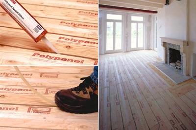 Polypanel ist eine patentierte Trockenbaukonstruktion, die auf einem dünnen, leichten Holzpanel basiert. Das System ist sowohl für die Wand- als auch für die Fußbodenverlegung optimal geeignet. Polypanel zeichnet sich durch extreme Leichtigkeit und eine geringe Aufbauhöhe von nur 12 mm aus. Es ist nicht nur für ökologische Bauvorhaben eine ausgezeichnete Lösung, sondern auch bei Sanierungsprojekten hat sich Polypanel z. B. auf Innenwänden in Leicht- und Trockenbauweise bewährt. Zuerst wird das Polypanel Spezial-Silikon in die Rohrhalte-Nut gespritzt. Die Heizrohre werden danach ganz einfach in die eingearbeitete Nut gedrückt und geradlinig geführt. Die schnelle und effektive Verlegung an der Wand und auf dem Boden ist bei Polypanel kein Problem. Auf der Rückseite der Holzplatten sorgt eine aufgestanzte Aluminiumplatte für eine gleichmäßige Verteilung der Wärme. Foto: Polytherm